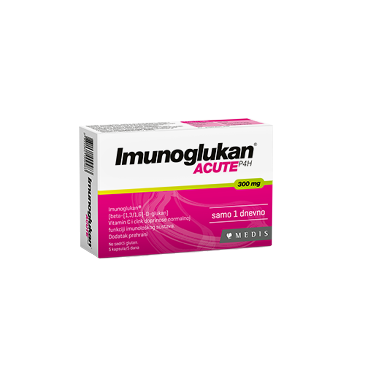 Imunoglukan P4H ACUTE je dodatak prehrani u kapsulama koje osim Imunoglukana (300 mg) sadrže i vitamin C i cink, koji doprinose radu imunološkog sistema.