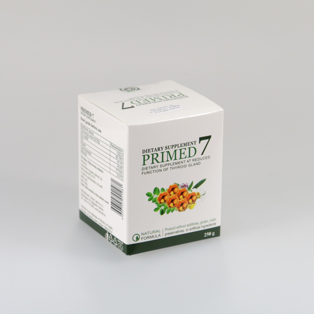 PRIMED 7 je prirodan preparat, napravljen po provjerenoj recepturi, na bazi meda i ekstrakta zelenih oraha. Ne sadrži vještačke boje, konzervanse i druge aditive.